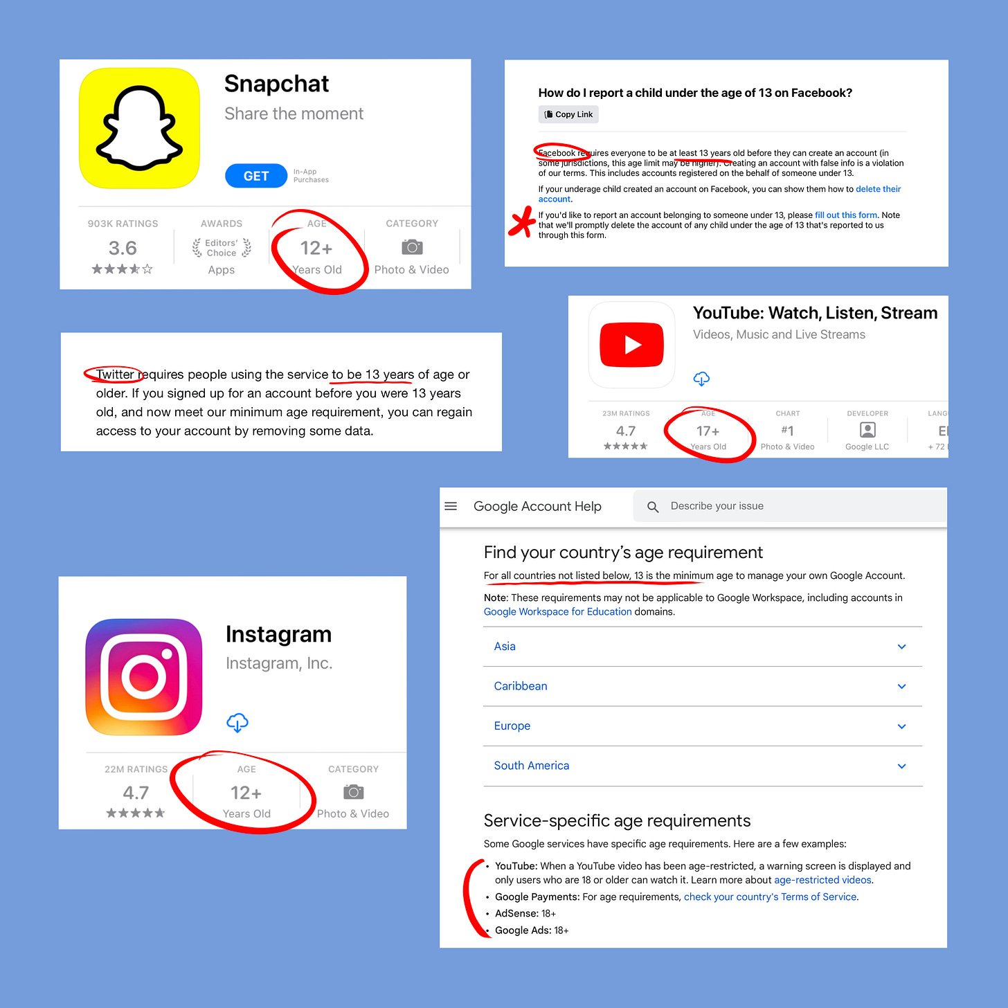 Many internet services we use daily become available at 13. The reason is COPPA law. At the dawn of e-commerce in 1998, US Congress introduced COPPA to regulate what personal information websites can collect about users under 13. COPPA is interesting for two reasons: 1) it's somewhat outdated to regulate the fast pace tech industry; 2) few people understand this age. From WSJ: